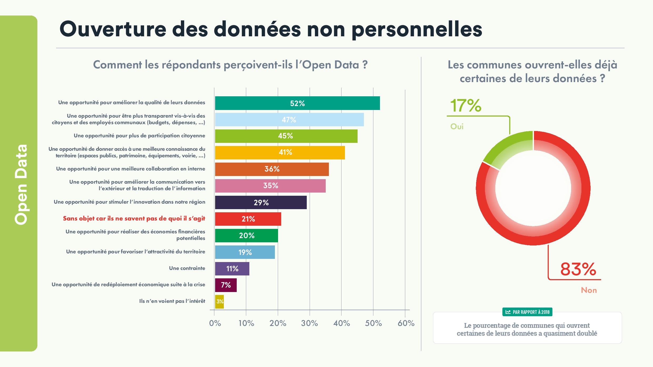 Il est intéressant de noter que seulement 5% des communes n’ouvrent pas leurs données car elles n’en voient pas l’intérêt. Ce pourcentage a encore baissé en 2 ans (11% en 2018).
